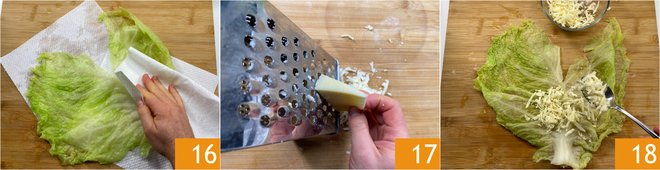 Pat dry with a paper towel 16. Grate the Casera cheese 17. Fill each leaf with the cheese 18.