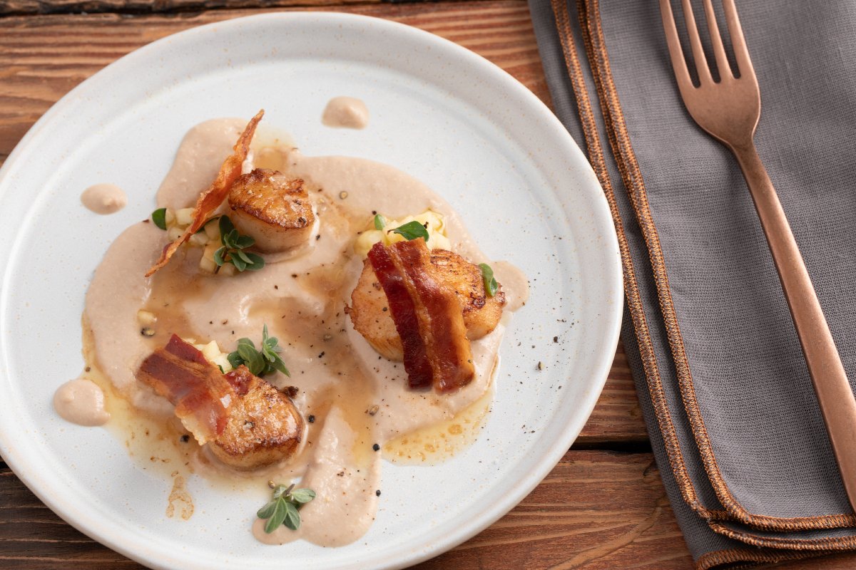 Scallops are exquisite mollusks ideal for serving as an appetizer during the holidays… instead of the usual gratinated scallops, we propose a combination that will tantalize your guests' palates: scallops with bacon and chestnut cream! A recipe that expertly uses flavors and textures to create a unique and unforgettable taste experience, thanks to the use of both land and sea ingredients. The delicacy of the scallops meets the savoriness of crispy bacon and the sweetness of the chestnut and walnut cream, balanced by a light tangy note from an aromatic apple dice. Perfect for New Year's Eve, scallops with bacon and chestnut cream are a gourmet recipe that will elevate your dinner menu!