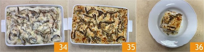 Bake 34 in a preheated static oven at 392°F for about 20 minutes, then switch to grill mode at 464°F for another 5 minutes, until the surface is golden brown and gratinated 35. Let rest a few minutes and serve your sea and mountain lasagna hot, cut into portions 36!