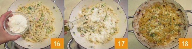 and then the grated pecorino cheese 16. Add a drizzle of oil and do not stir 17. Transfer the pot to a preheated static oven at 400°F and let it brown for about 25 minutes. At the end of cooking, grate some black pepper and serve your baked sedanini casserole still very hot 18.
