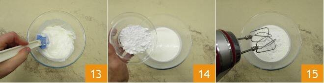 Grate the lemon zest 16 and incorporate it into the yogurt mixture 17 very gently, with movements from bottom to top 18.