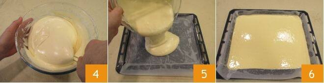 Mix with a spatula from bottom to top to incorporate without deflating 4. Then pour the batter onto a 12x15 inch sheet pan already greased and lined with parchment paper 5. Level carefully and proceed to baking 6: