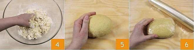 Knead 4 until you get a smooth and firm dough 5, which will have a consistency similar to egg pasta, wrap it in plastic wrap, and let it rest at room temperature for about 30 minutes 6, the time needed to prepare the filling.