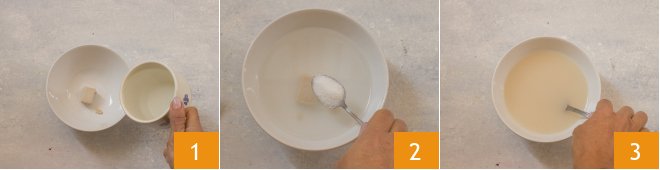 To prepare the soft anchovy buns, start by crumbling the yeast into a bowl, pour in the room temperature water 1 and the sugar 2. Mix everything well with a fork 3.