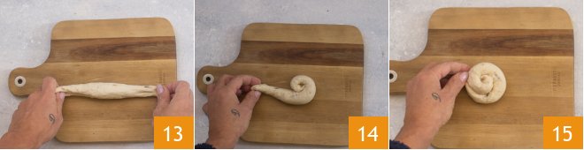 Form a log about 8 inches 13 and then twist it tightly on itself 14 to form a snail shape 15.
