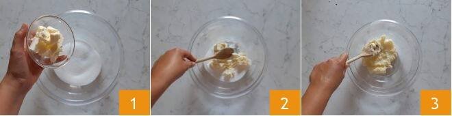 To prepare the soft coffee cookies, first put the soft butter together with the sugar 1 in a bowl. Use a wooden spoon to work everything 2 until you have obtained a soft and creamy mixture 3.