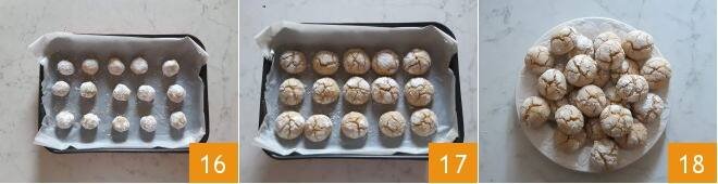 Place them on a baking sheet lined with parchment paper, spacing them apart 16. You will get about 30. Bake in a preheated static oven at 320°F for 15 minutes. After this time, remove them from the oven 17 and let them cool before transferring them to a serving plate 18.