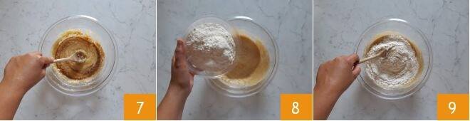 Incorporate it with the rest of the ingredients 7 and add the flour 8. Mix again 9 to absorb the flour.