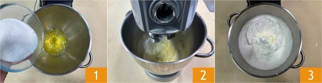 To prepare the soft milk cakes, start with the sponge cake: in the bowl of a stand mixer, pour the egg whites and sugar 1. Whip with the beaters at high speed for 10-15 minutes 2 until you obtain a white and frothy mixture 3. Meanwhile, melt the butter in a double boiler and let it cool.