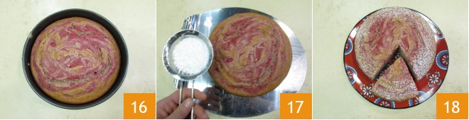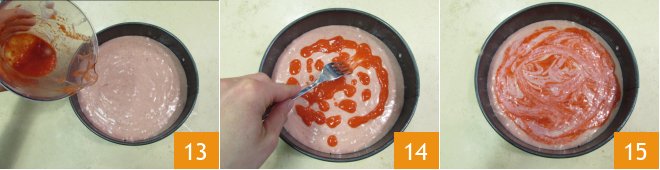 Pour the remaining strawberry puree on top 13 and create a marbled effect with a fork 14 15. Bake in a preheated static oven at 350°F for about 55 minutes.