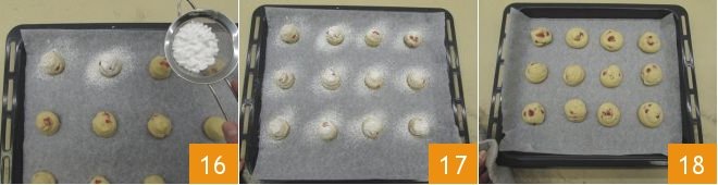 Sprinkle the surface of the cookies with powdered sugar (16-17) and bake in a preheated static oven at 356°F for 20 minutes on the middle shelf. Remove the strawberry cookies from the oven when they are still light and soft 18. Let cool and then enjoy your soft strawberry cookies.