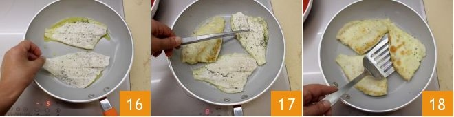 when the oil is hot, brown the fillets for 2 minutes per side 16, turning them on both sides with kitchen tongs for even cooking 17. Once ready 18, turn off the heat,