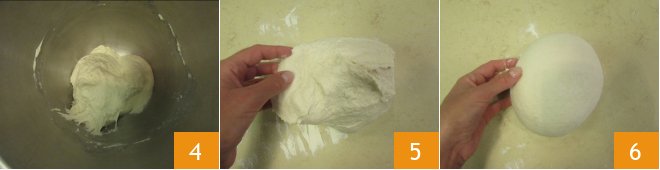 and work it for about 5 more minutes 4. Transfer the dough to a lightly floured work surface 5 and shape it quickly into a sphere 6.
