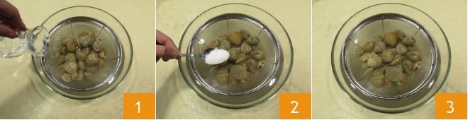 To prepare the spaghetti with sea truffles, start by soaking them in abundant salted water for at least an hour. Then place them in a container with a colander inside and cover with cold water 1. Add plenty of coarse salt to recreate seawater 2 and let them rest 3. If after this process you notice any open shells, because the sea truffle is dead, discard them as they could compromise the taste of your sauce.
