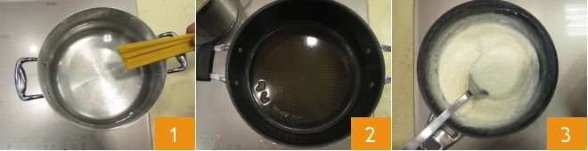 Cook the pasta in plenty of boiling, lightly salted water 1 and about halfway through cooking, turn on the heat under the pan with the pepper infusion to reduce it 2. Meanwhile, retrieve the fondue and you will immediately notice that it has changed consistency: it will have become much thicker 3 thanks to the action of the starch.