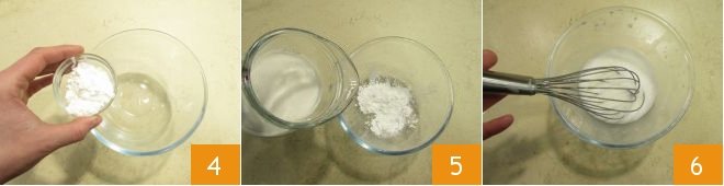 At this point, in another small bowl, pour the cornstarch 4 and 1/4 cup of milk 5. Mix with a whisk until it is completely dissolved and you obtain a kind of batter 6.