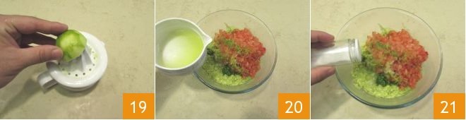 squeeze the juice 19 and add it to the other ingredients 20. Salt 21 and add plenty of freshly ground pepper.