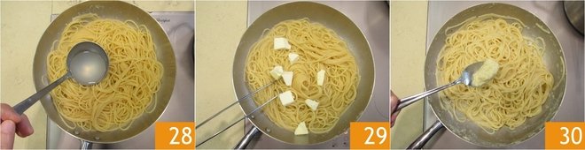 Add another ladle of cooking water 28 and finish cooking. Turn off the heat and add the cold butter in cubes 29. Stir and taste the pasta, if you prefer an even more lemony touch, add more lemon cream 30.