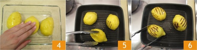 Brush them with oil, making sure to coat all sides well 4 and place them on a hot grill. When the typical grill marks begin to form, you can turn them 5. Continue grilling until all sides are well grilled 6.