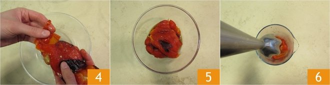 Peel them 4 and remove the internal seeds. Gradually transfer them into a long, narrow container 5. Now blend them with an immersion blender 6.