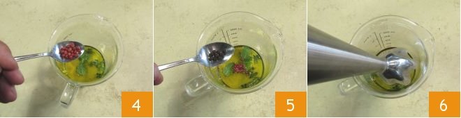 pink peppercorns 4, and black pepper 5 and blend with an immersion blender 6 until you get a smooth consistency.