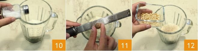 the salt 10, season with a pinch of grated nutmeg 11, add the pine nuts 12
