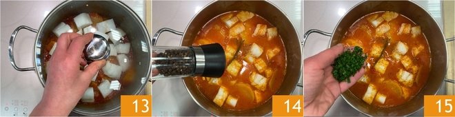 Cook with the lid on for another 10 minutes 13. At the end of cooking, adjust the salt and pepper 14 and flavor with chopped parsley 15.