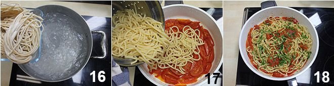 and cook them in boiling water for a few minutes 16. When they are al dente, drain them and add them to the sauce 17. Sauté them for a couple of minutes in the pan, then add plenty of chopped parsley 18. Your Strangozzi alla Spoletina is ready: plate them and serve hot.