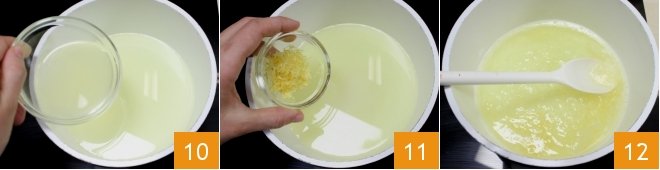 Pour in the lemon juice 10 and the grated lemon zest 11. Mix the ingredients 12 and bring to a boil.