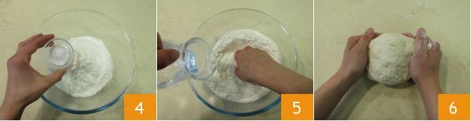 In the meantime, take care of the fresh pasta. In a bowl, pour the flour, and salt 4 and knead by pouring the water a little at a time while working with the other hand 5. Work for a few minutes on the work surface until you get a soft and homogeneous ball, wrap it in plastic wrap and let the dough rest at room temperature for at least half an hour 6.