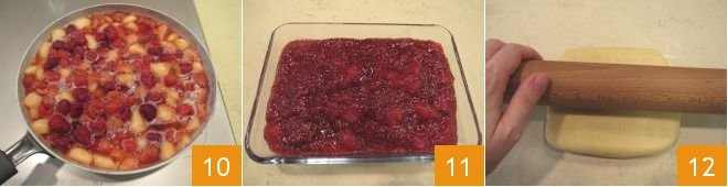 Cook over low heat 10 until the fruit has softened and dried (about 20 minutes), then transfer it to a baking dish and let it cool 11. Meanwhile, roll out the pastry using a rolling pin 12.