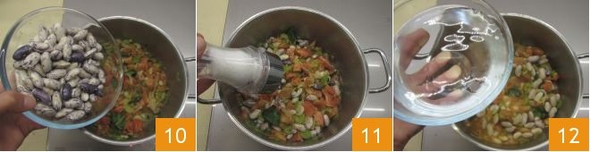 and the beans 10. Salt 11, pour the water until it covers the vegetables 12.