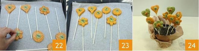 and if desired, garnish them with poppy seeds 22, then bake them in a preheated static oven at 356°F for about 15 minutes (if using a fan oven, at 320°F for 5-10 minutes). Once cooked, let the pie pops cool slightly 23 and then serve them by sticking them in a vase as if they were delicious little flowers 24!