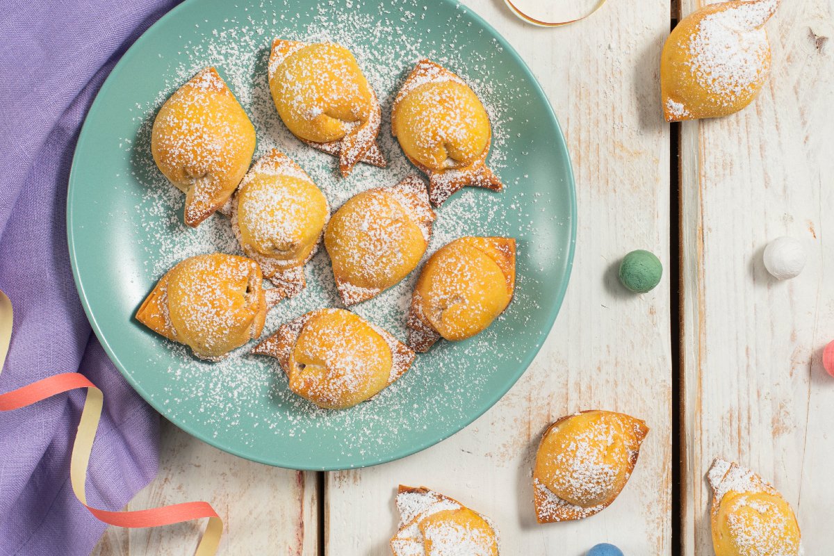 Cappelletti filled with ricotta and chocolate? No, it's not a joke but a delicious Carnival dessert! The sweet Carnival cappelletti, in fact, resemble the appearance of this typical filled pasta shape but are made with shortcrust pastry and baked in the oven. Inside the crunchy shell, you'll find a soft heart made of sheep's ricotta enriched with dark chocolate chips, cinnamon, and orange zest. A creative idea that revisits the shape of classic Sweet Carnival Ravioli without forgetting traditional flavors, to be made with simple, affordable, and easily available ingredients... all more than valid reasons to add sweet Carnival cappelletti to the party buffet!