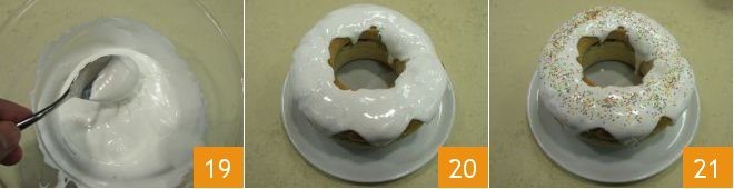Work the mixture until you get a smooth and fluid glaze 19. Now decorate the sweet casatiello by spreading it with the royal icing 20 and complete the decorations with colorful sprinkles to your liking 21. Enjoy your casatiello!
