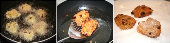 Heat a pan with peanut oil and let it become very hot (but not boiling), then immerse spoonfuls of the mixture and form fritters that you will brown on both sides over low heat.