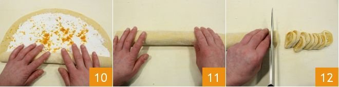 At this point, roll the dough (10-11) and let it rest in the fridge for another 30 minutes. Then make the tagliatelle by cutting the roll into slices about 0.4 inches thick 12.