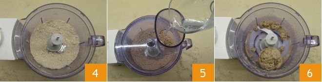 and blend to obtain a sandy mixture 4. Continue blending at high speed while pouring in the ice-cold water in a thin stream 5 until the mixture comes together: it will only take a few moments 6.