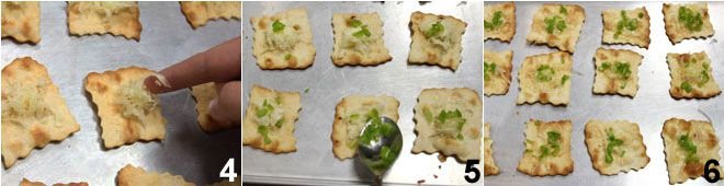 Place the 12 pastries on a baking sheet and fill each one with a heap of cheese 4 and 3-4 pieces of chili pepper 5. Put the filled pastries in a hot oven at 350°F just for a minute, the time it takes for the cheese to melt 6. Serve the tex-mex pastries immediately!