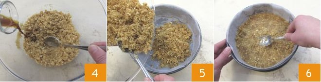 Also add 50 g of coffee 4, then mix thoroughly. Butter and line an 8.5-inch springform pan with parchment paper and pour the ladyfinger mixture into it 5. Distribute it evenly on the bottom, pressing well with the back of a spoon to compact it 6. Finally, to set it, transfer the pan to the fridge for at least half an hour.