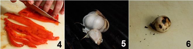 Cut the peppers into strips 4, then roast the garlic cloves as well (5-6), peel them