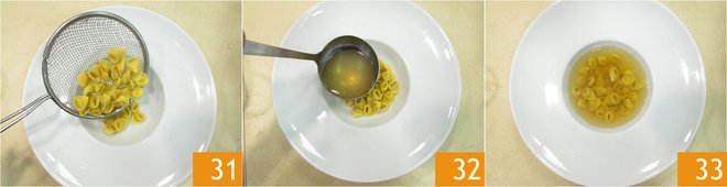 and transfer them to a plate 31. Add the hot broth, taking it from the other pot, so it will be clearer 32. Do the same until all the plates are finished and serve them 33.