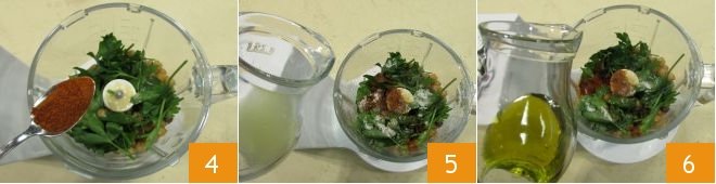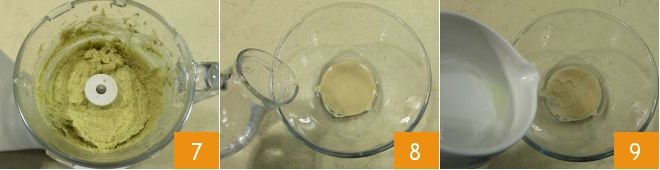 Blend until you obtain a smooth and lump-free mixture 7 that you will set aside. Now take care of the accompanying sauce: pour 2 tbsp of tahini, water 8, and 2 tbsp of lemon juice 9 into a bowl,
