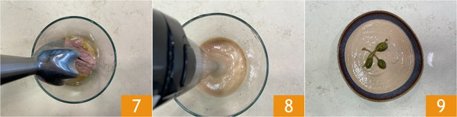 Blend with an immersion blender and add more broth as needed 7. You should obtain a smooth, lump-free cream 8. Serve the tuna sauce with some caper berries 9.