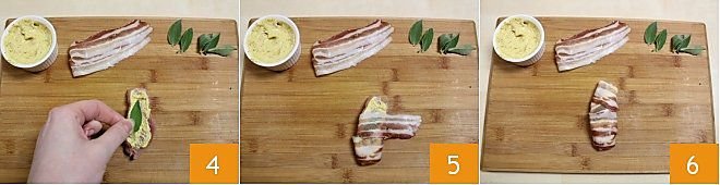 place a small sage leaf on top 4. Wrap the turkey bite with a couple of slices of smoked bacon until it is completely covered (5-6).