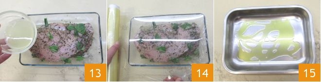 Sprinkle with salt and pepper 10 and massage well to absorb the flavors 11. Then turn your turkey breast over to the other side 12 and repeat the process with the remaining ingredients.