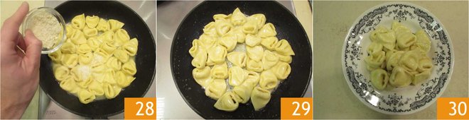 Season with grated Grana Padano DOP 28, mix to emulsify, and they will be ready 29 to be plated 30.