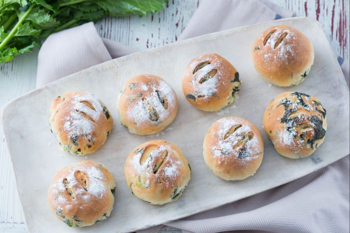 and let rise for another 40 minutes 28. Bake in a static oven on the central rack at 375°F for about 30 minutes. When they are golden brown, remove your turnip greens rolls from the oven 29 and let them cool slightly before serving 30!