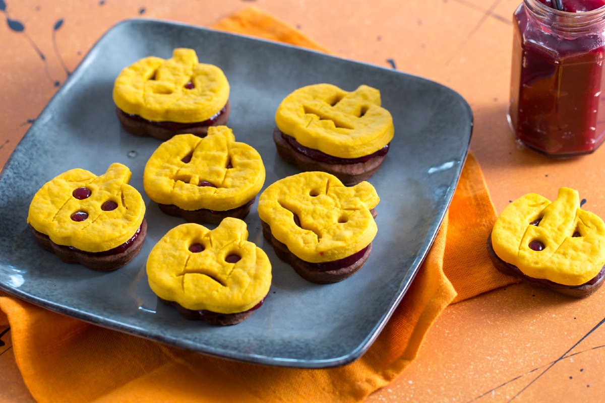 On Halloween, pumpkin and treats can't be missed, which is why we created delicious and crumbly cookies with a scary two-tone cocoa and pumpkin look, perfect for adding flavor to the basket of kids dressed up for the occasion. This time, it won't be the pumpkin that's carved, but the shortcrust pastry! We had fun carving little eyes and scary mouths to create fragrant, two-tone, and two-flavor pumpkin cookies that will be irresistible. Come and find out how to make the spookiest party of the year sweeter and more enticing.