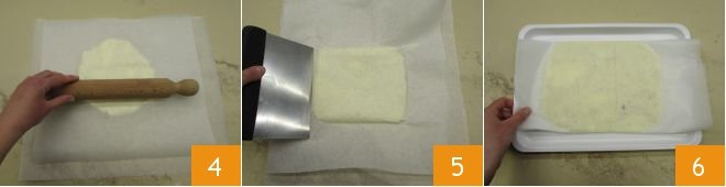 Cover with another sheet of parchment paper and roll it out using a rolling pin and a dough scraper 4 5. You should obtain a slab approximately ¼ inch thick, measuring 9x7 inches. Place the slab on a tray and refrigerate until needed.